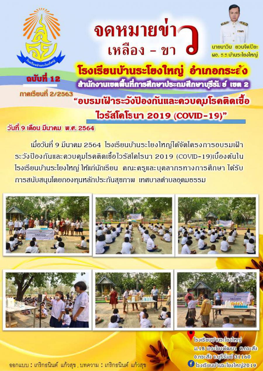 เมื่ิวันที่ 9 มีนาคม 2564 โรงเรียนบ้านระโยงใหญ่ ได้จัดโครงการอบรมเฝ้าระวังป้องกันและควบคุมโรคติดเชื้อไวรัสโคโรนา 2019 (COVID-19)
