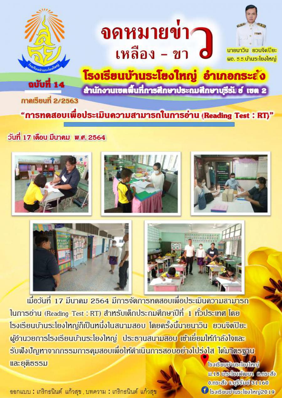 เมื่อวันที่ 17 มีนาคม 2564 มีการทดสอบเพื่อประเมินความสามารถในการอ่าน (Reading Test : RT)