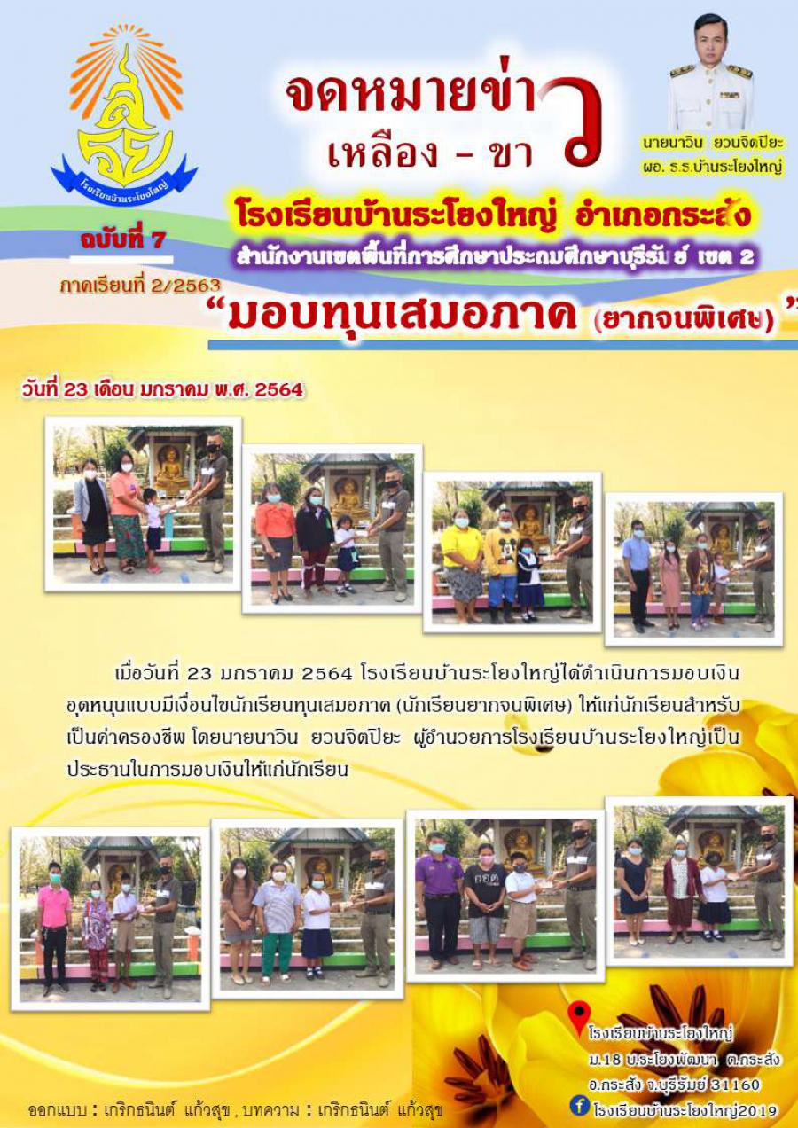 มอบทุนเสมอภาค (นักเรียนยากจนพิเศษ)